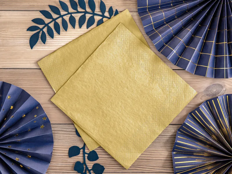 Serwetki trójwarstwowe w kolorze złotym metalizowanym, wymiary ok. 40 x 40 cm. (1 op. / 20 szt.)