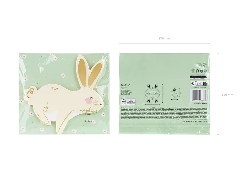Serwetki papierowe Zajączek, mix kolorów ze złotym nadrukiem, wymiary po rozłożeniu ok. 25 x 32 cm, wymiary po złożeniu ok. 12.5 x 16 cm. (1 op. / 20 szt.)