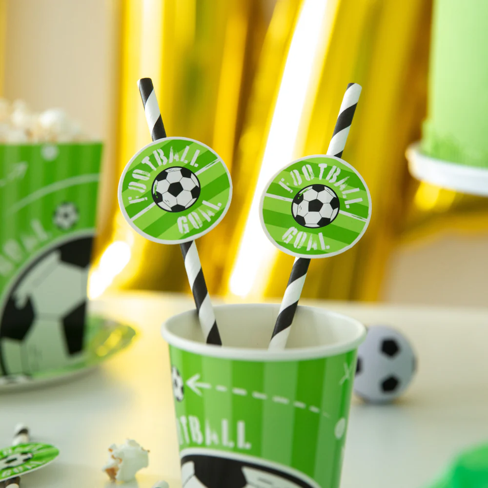 Słomki papierowe do napojów do niezastąpiony gadżet, zwłaszcza na dziecięcych przyjęciach. Te słomki zrobią furorę wśród fanów footballu. Picie z ich pomocą będzie przyjemnością i świetną zabawą.