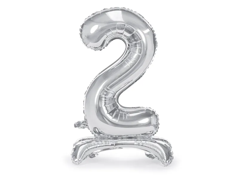 Stojący balon foliowy Cyfra ”2” 70 cm srebrny