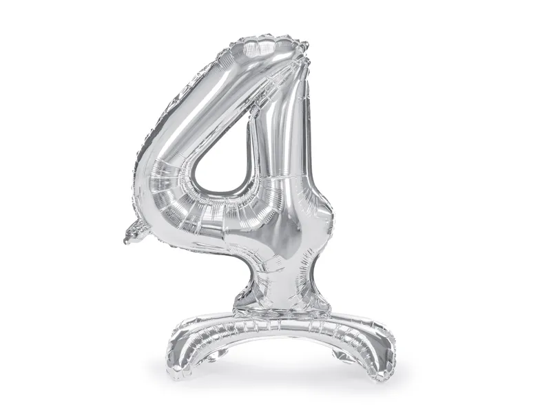 Stojący balon foliowy Cyfra ”4” 70 cm srebrny