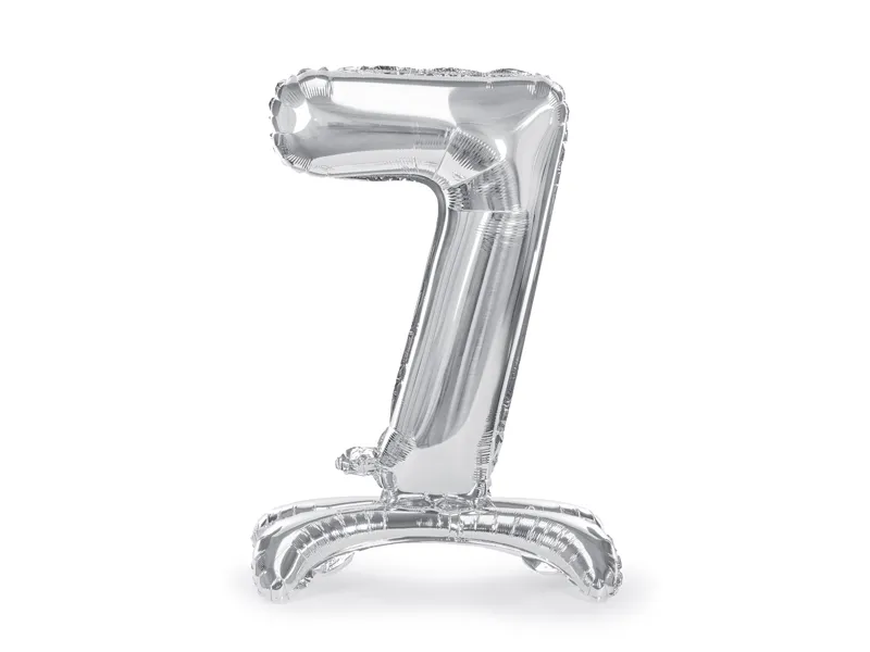 Stojący balon foliowy Cyfra ”7” 70 cm srebrny