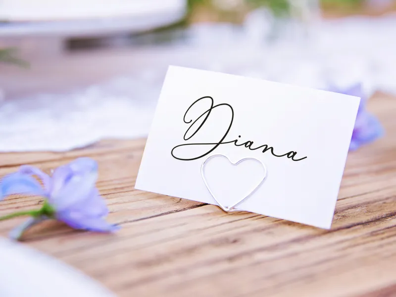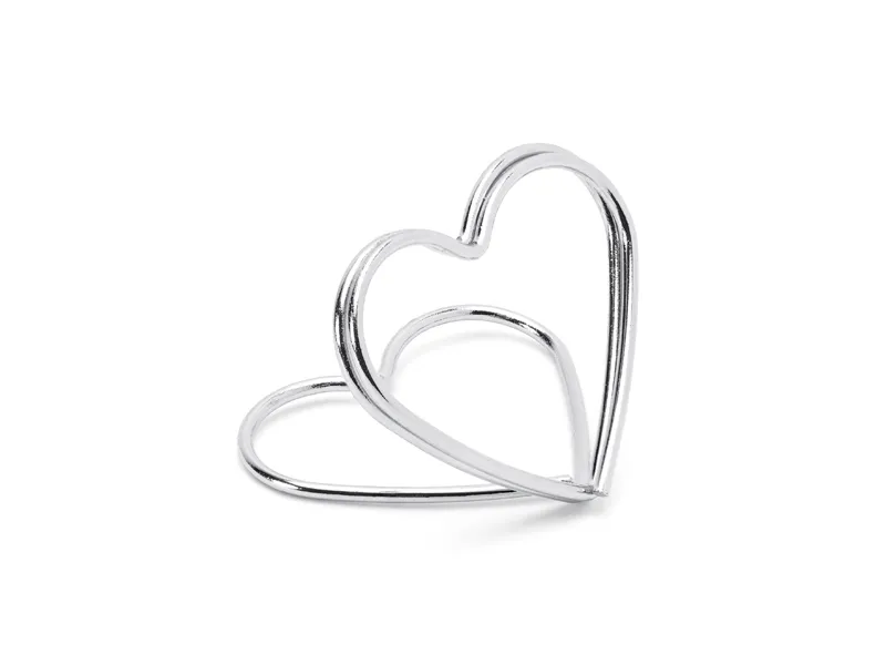 Stojaki na winietki Serca w kolorze srebrnym, wysokość ok. 2,5 cm. (1 op. / 10 szt.)