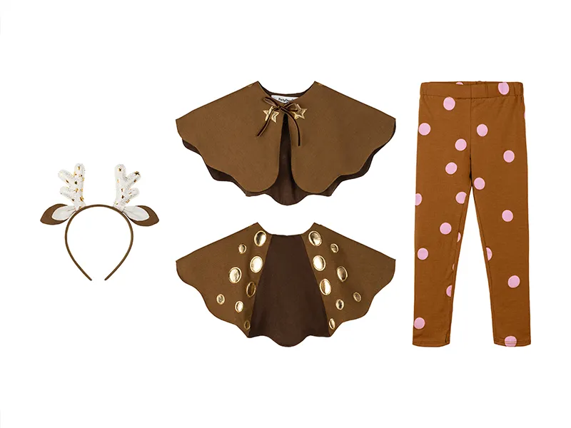 Strój dla dziewczynki – Sarenka, mix kolorów. Zestaw zawiera legginsy, kołnierzyk oraz opaskę. Przeznaczony dla dzieci w wieku 3-5 lat. (1 op. / 1 szt.)