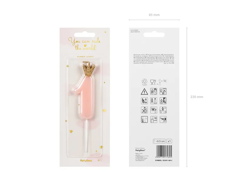 Świeczka urodzinowa Cyferka 1 jasny różowy 9.5 cm