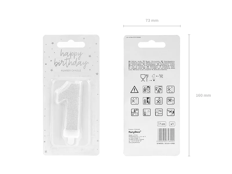 Świeczka urodzinowa Cyferka 1 w kolorze srebrnym brokatowym, rozmiar ok. 7 cm.