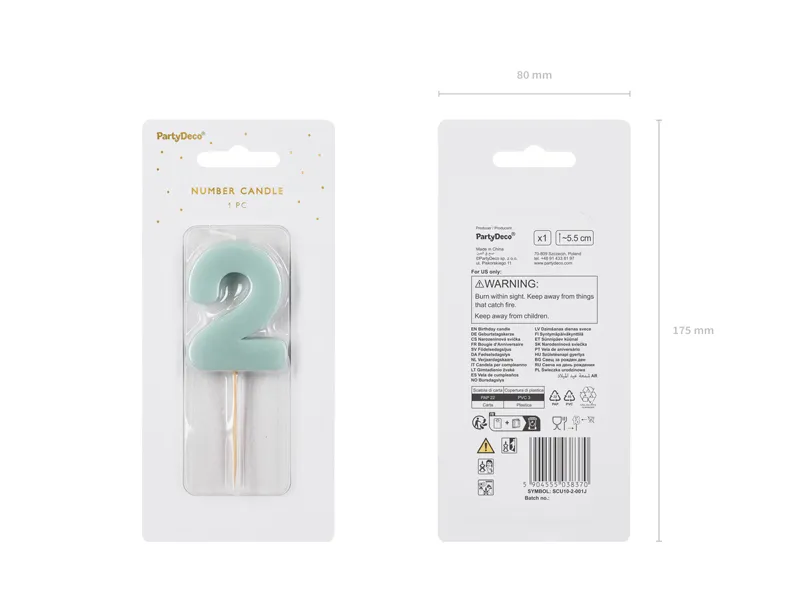 Świeczka urodzinowa Cyferka 2, w kolorze jasnoniebieskim, rozmiar ok. 5.5 cm.