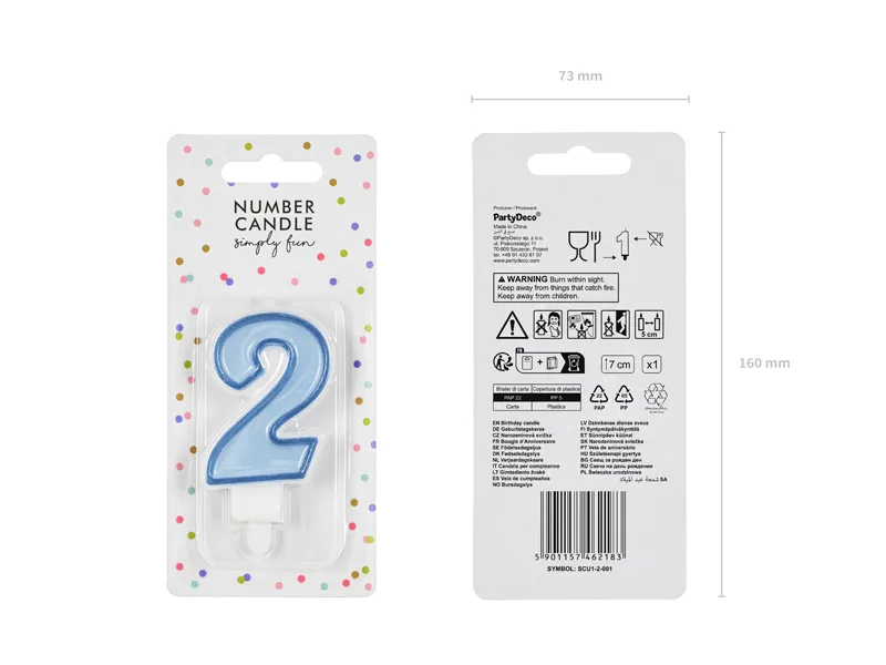 Świeczka urodzinowa Cyferka 2 w kolorze niebieskim, rozmiar 7 centymetrów.