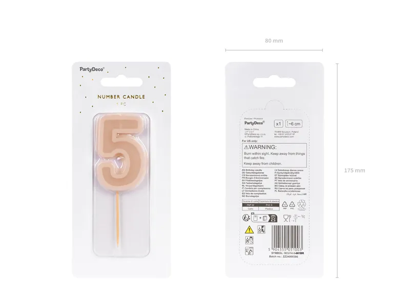 Świeczka urodzinowa Cyferka 5 brudny róż 6 cm