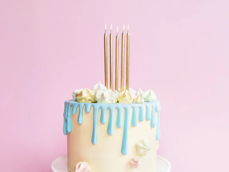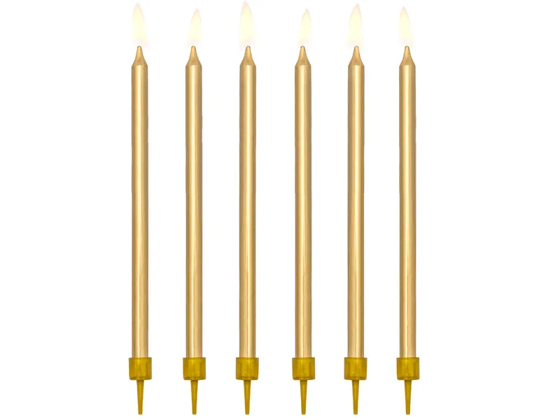 Świeczki urodzinowe gładkie w kolorze złotym metalizowanym, rozmiar ok. 12,5 cm, w zestawie 12 świeczek i 12 podstawek. (1 op. / 12 szt.)