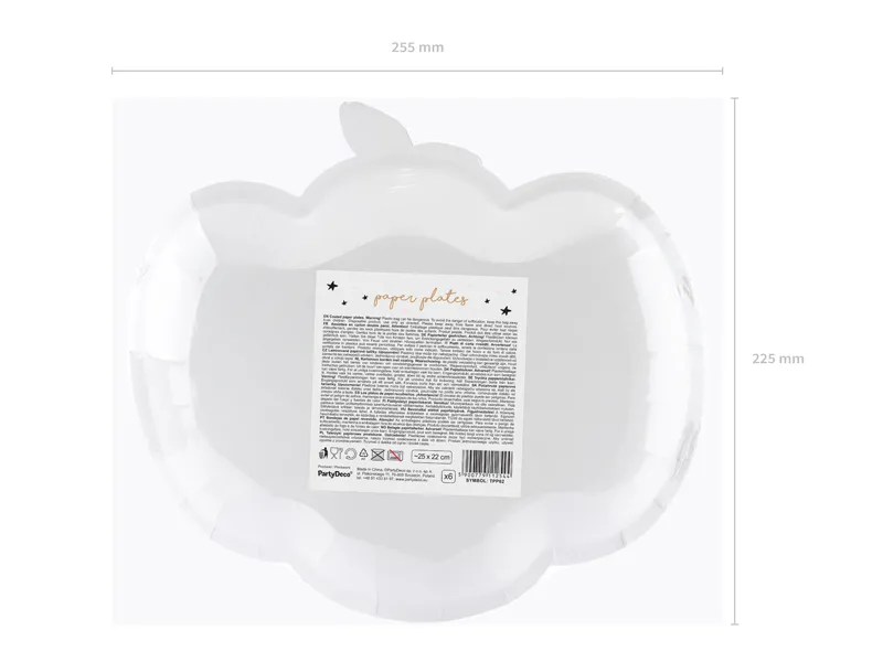 Talerzyki papierowe Dynia w kolorze różowym z czarnym nadrukiem, wymiary ok. 25 x 22 cm. (1 op. / 6 szt.)