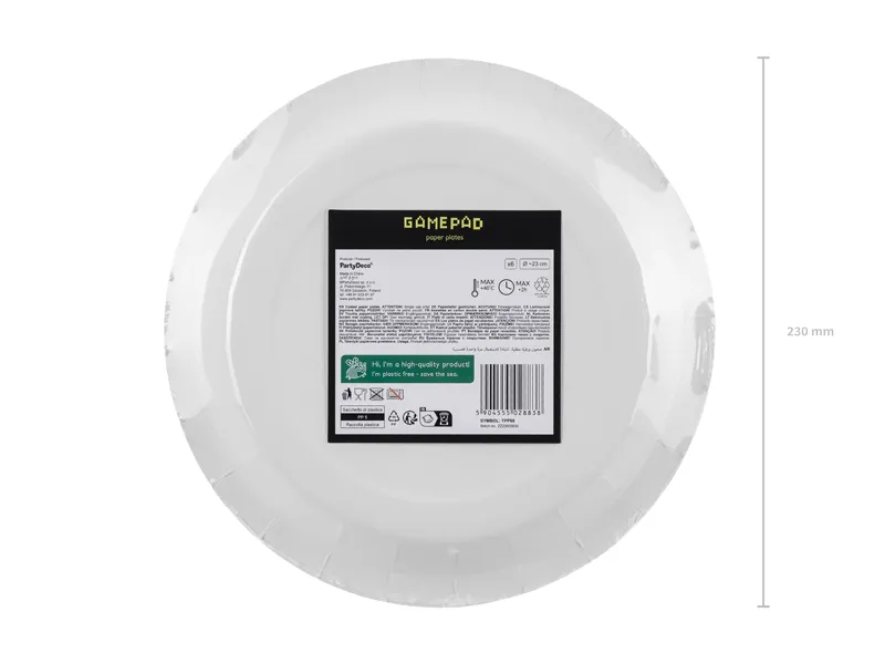 Wyjątkowe talerzyki „Gamepady” o średnicy 23 cm to świetny sposób na połączenie praktycznego elementu stołu z wciągającym motywem gamingowym, który sprawia, że każda uczta staje się częścią wirtualnej przygody. Każdy z sześciu talerzyków ozdobiony jest grafiką kolorowego gamepada, joysticka lub przycisków, co pozwala każdemu gościowi poczuć się jak gracz w swoim domu. To efektowny dodatek – zarówno funkcjonalny, jak i dekoracyjny – który harmonijnie łączy się z resztą kolekcji Game, tworząc spójną scenografię imprezy.