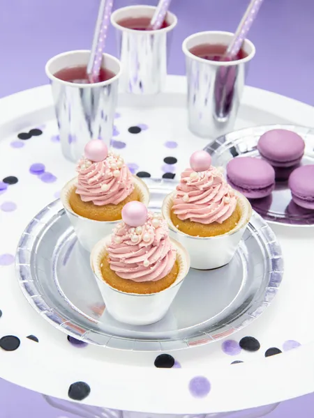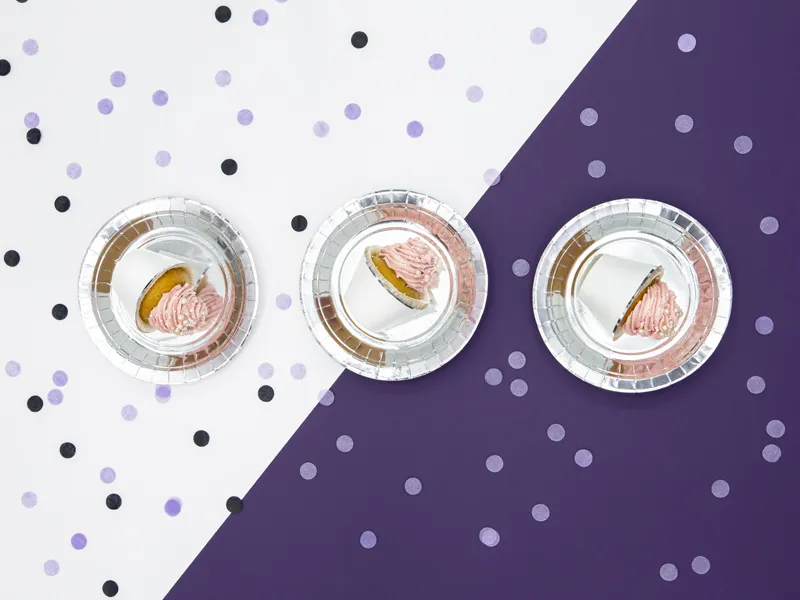 Talerzyki papierowe okrągłe w kolorze srebrnym, średnica ok. 23 cm (1 op. / 6 szt.)
