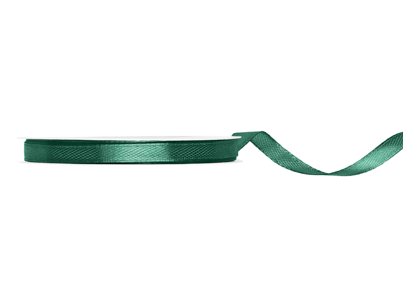 Tasiemka satynowa w kolorze butelkowej zieleni, szerokość 6 milimetrów, długość 25 metrów.
