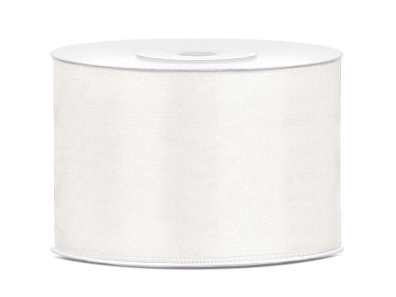 Tasiemka satynowa w kolorze jasnokremowym, szerokość 50 milimetrów, długość 25 metrów.