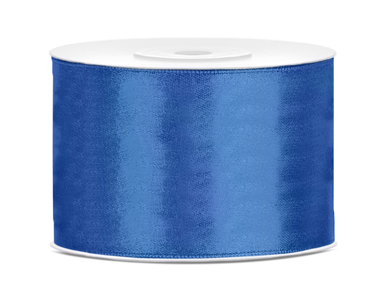 Tasiemka satynowa w kolorze królewsko niebieskim, szerokość 50 milimetrów, długość 25 metrów.