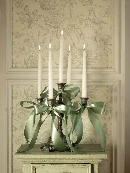 Tasiemka satynowa w kolorze szałwiowym, szerokość 38 milimetry, długość 25 metrów.