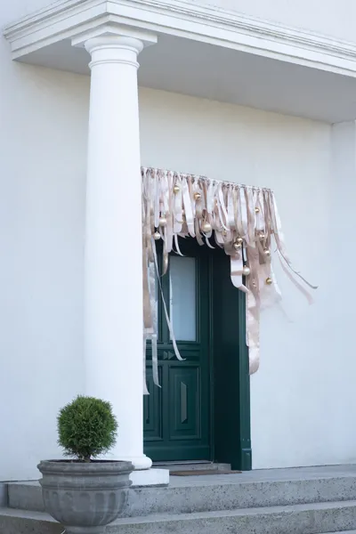 Tasiemka satynowa w kolorze zimnego złota, szerokość 25 milimetry, długość 25 metrów.