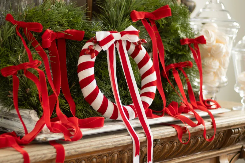 Tasiemka welurowa w kolorze czerwonym, szerokość 25 milimetrów, długość 10 metrów.