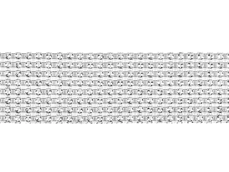 Taśma z cyrkoniami w kolorze srebrnym, szerokość ok. 4 cm, długość ok. 9 m.