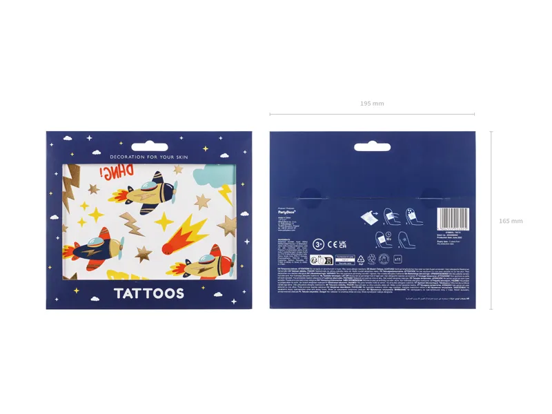 Tatuaże zmywalne Samoloty, mix wzorów i kolorów, zestaw zawiera 11 różnych wzorów. (1 op. / 11 szt.)