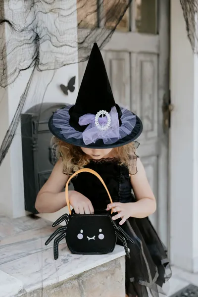 Torebka Halloween w kształcie pająka, filc, kolor czarny, wym. ok. 35 x 18 x 8 cm