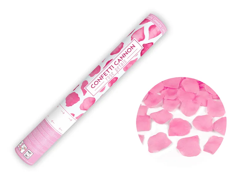 Tuba strzelająca sztucznymi płatkami róż w kolorze różowym, długość 40 centymetrów.