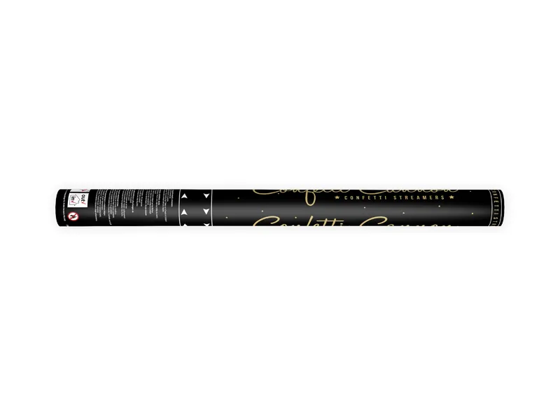 Tuba strzelająca długimi metalicznymi serpentynami w kolorze złotym, długość 60 cm.
