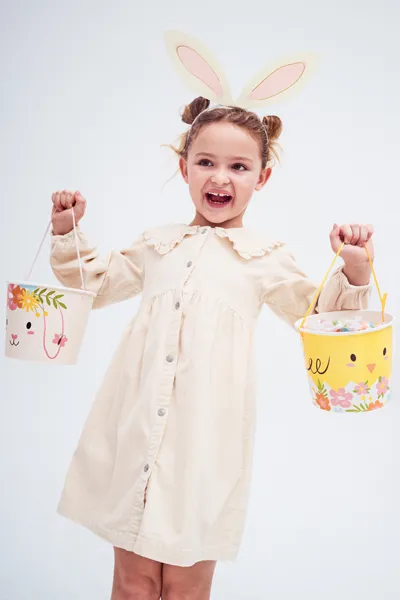 Zestaw wiaderek na cukierki Wielkanoc w dwóch wzorach, mix kolorów, wysokość ok. 14 cm. (1 op. / 2 szt.)