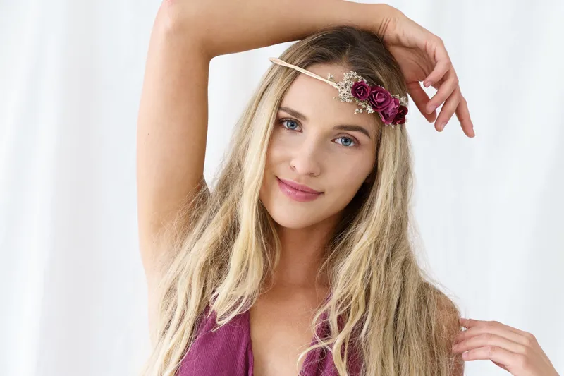 Kolor bordowy to propozycja dla osób ceniących styl ponadczasowy i wyraziste akcenty. Wianek o tej barwie doskonale wpisuje się w aranżacje wieczoru panieńskiego o bardziej klasycznej lub romantycznej estetyce. Może stanowić uzupełnienie stylizacji druhny, damy honorowej lub panny młodej podczas sesji zdjęciowej lub części oficjalnej wieczoru. Bordowy odcień pięknie komponuje się ze złotymi, beżowymi i pastelowymi dodatkami, tworząc elegancki kontrast i wyjątkowy efekt wizualny.