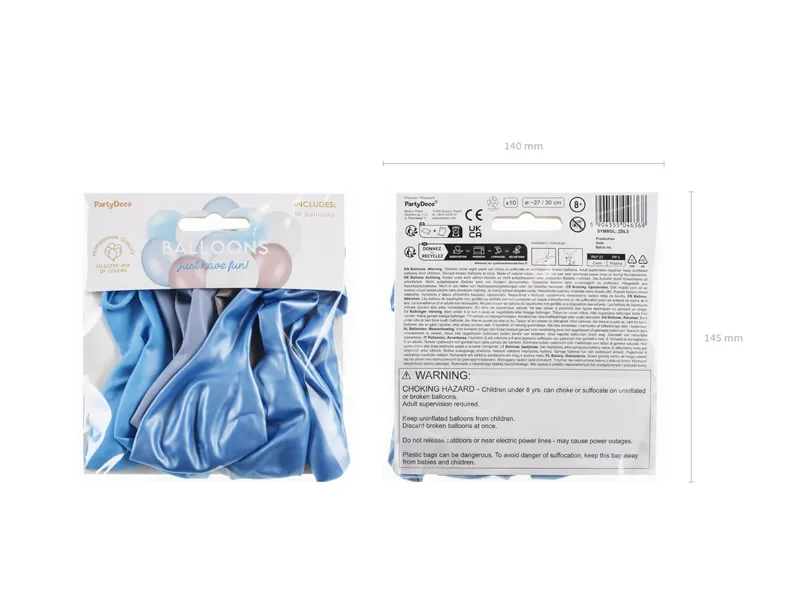 Zestaw balonów lateksowych, mix kolorów (pastelowy błękitny – 2 szt., metalizowany błękitny – 3 szt., pastelowy beżowy – 2 szt. i pastelowy niebieski – 3 szt.), zestaw zawiera balony w rozmiarach 27 cm i 30 cm. (1 op. / 10 szt.)